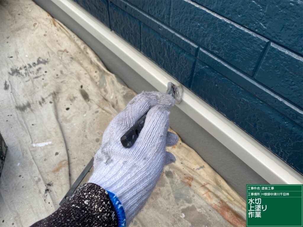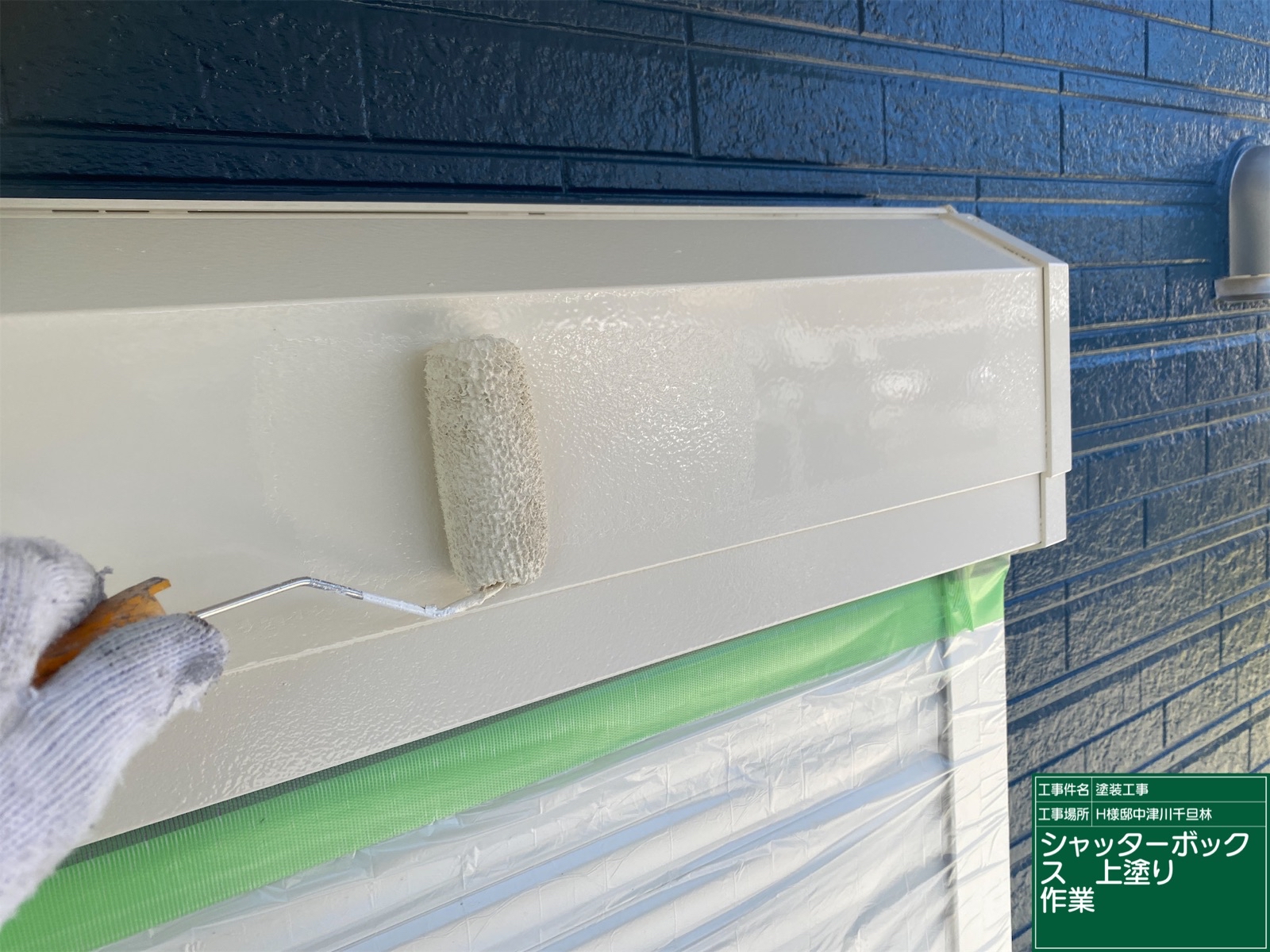 水切りの上塗り塗装                   シャッターボックスの上塗り塗装
