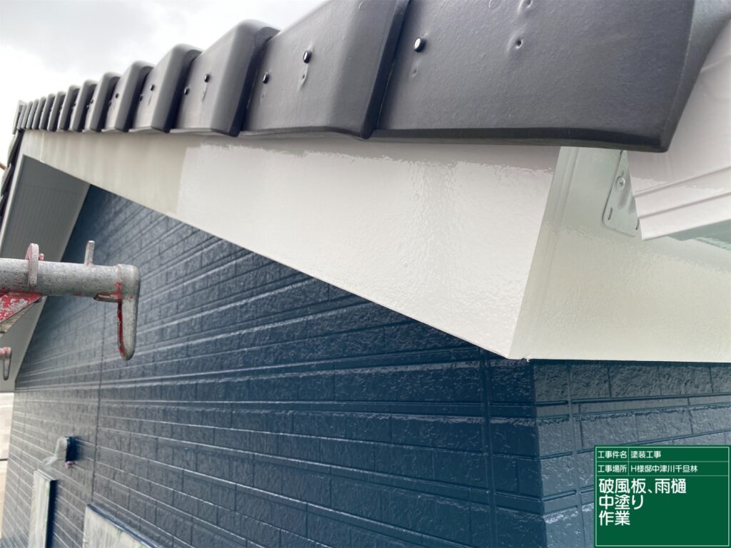 雨樋の中塗り塗装                     破風板の中塗り塗装