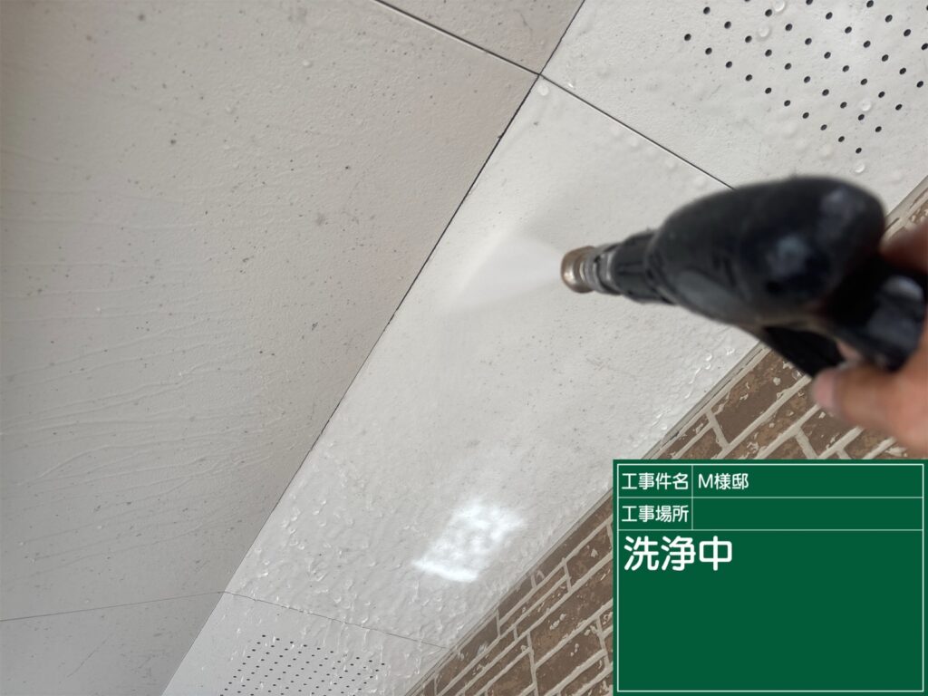 軒天の洗浄です。                 ベランダの洗浄です。