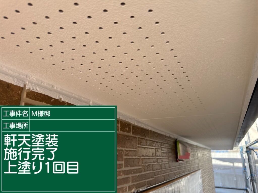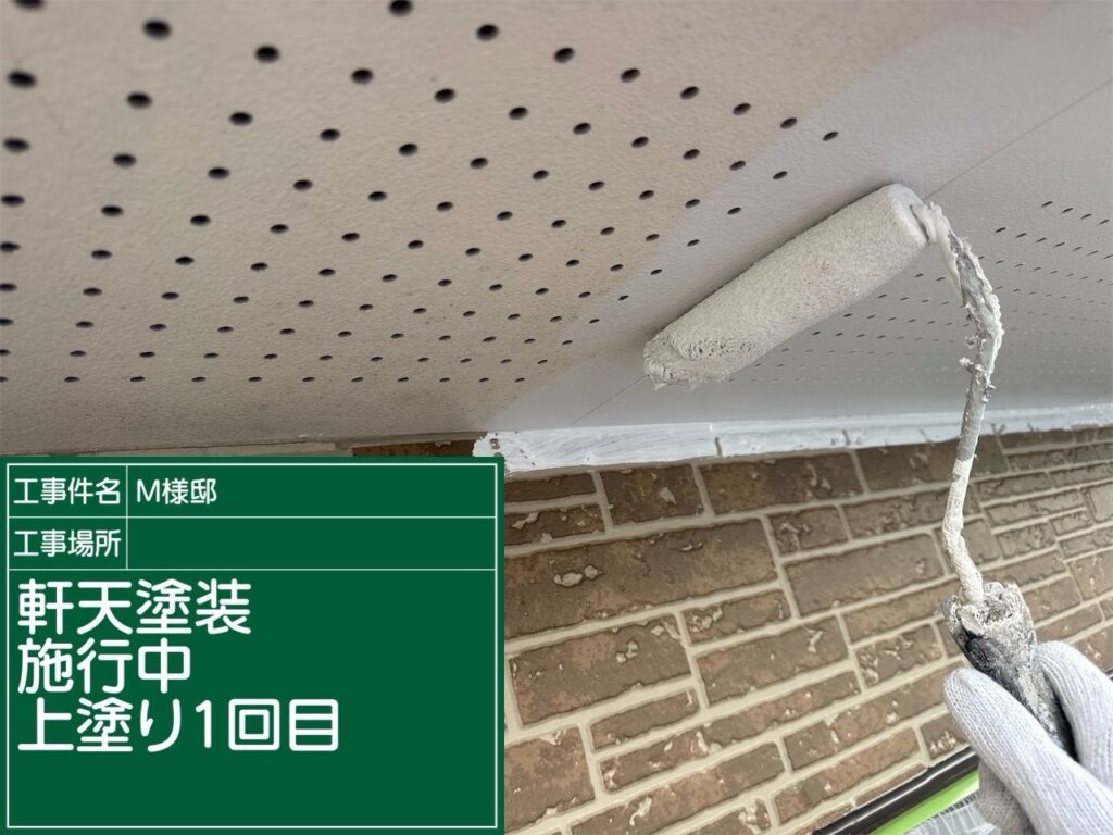 軒天の上塗り塗装1回目の