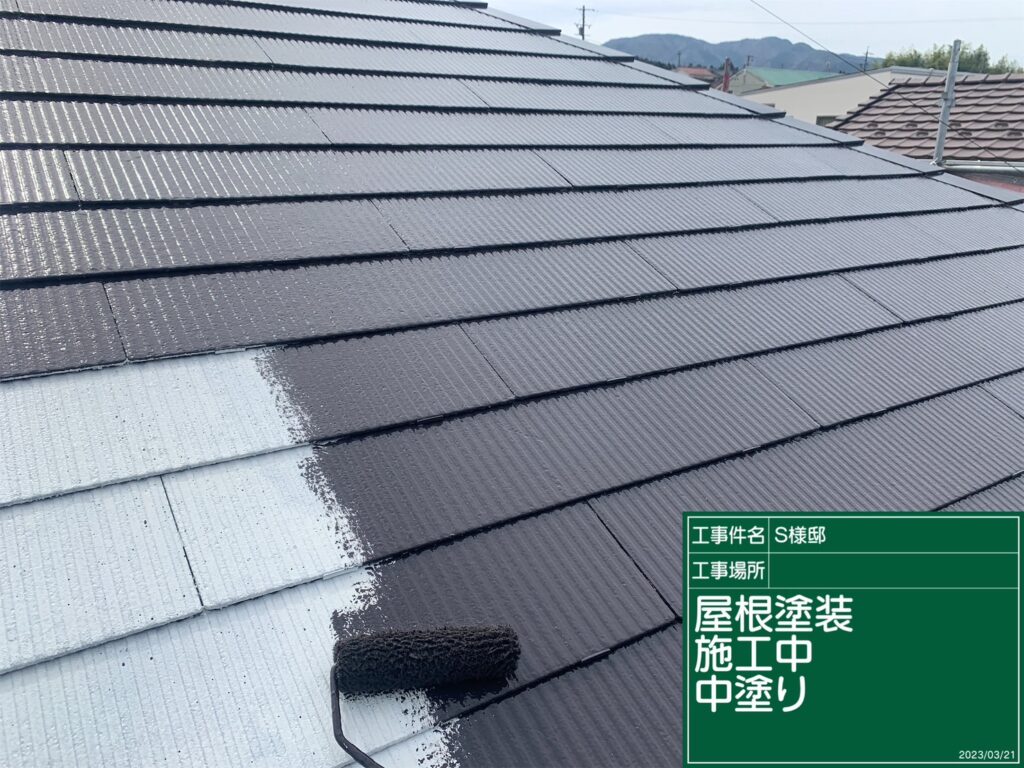 中津川市S様邸にて、屋根の中塗り塗装を施工致しました!