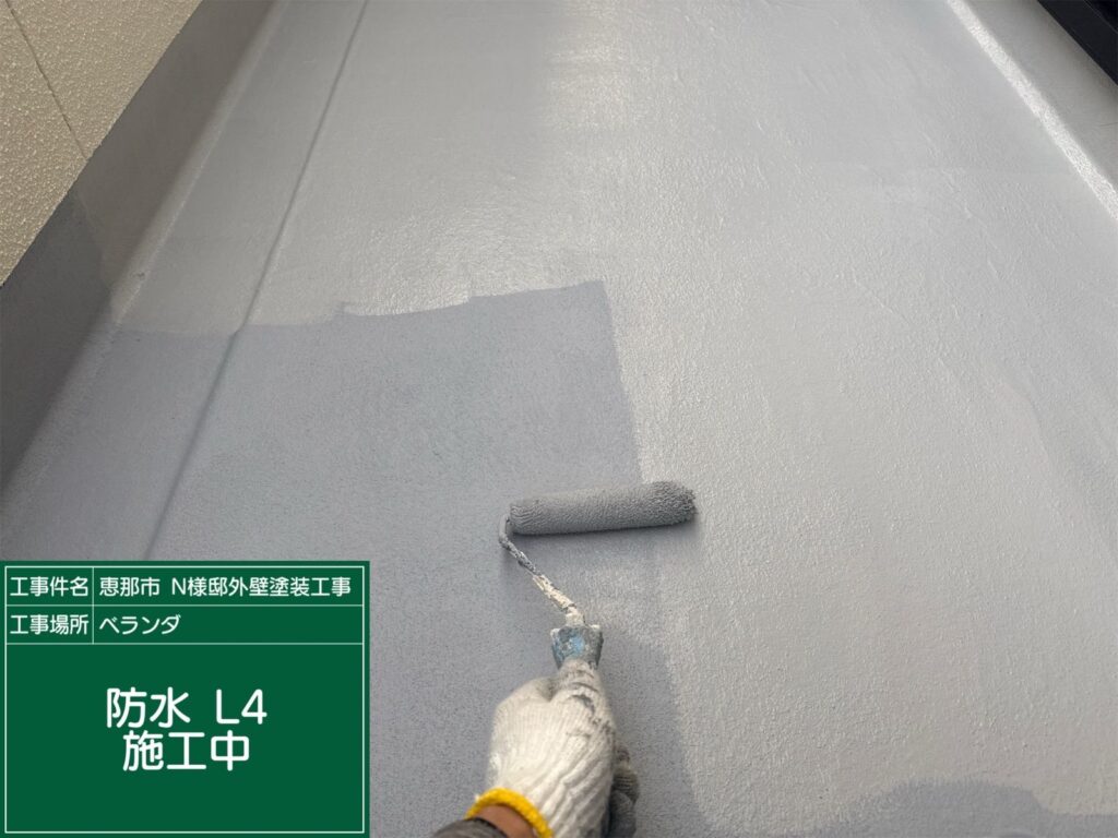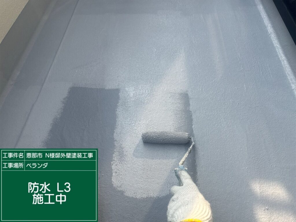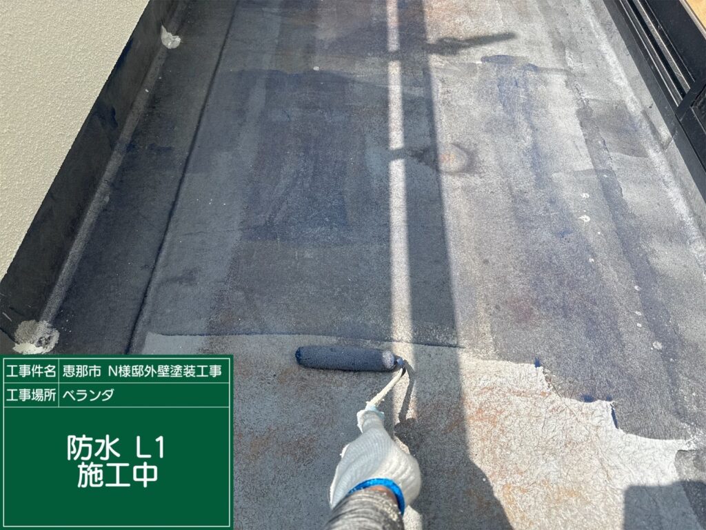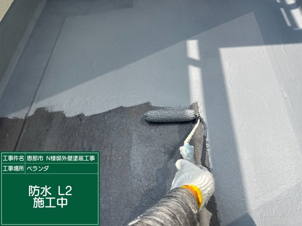 ベランダ防水L2の工程です。防水材を塗布します。