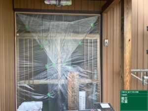 恵那市大井町の公民館の養生完了しました