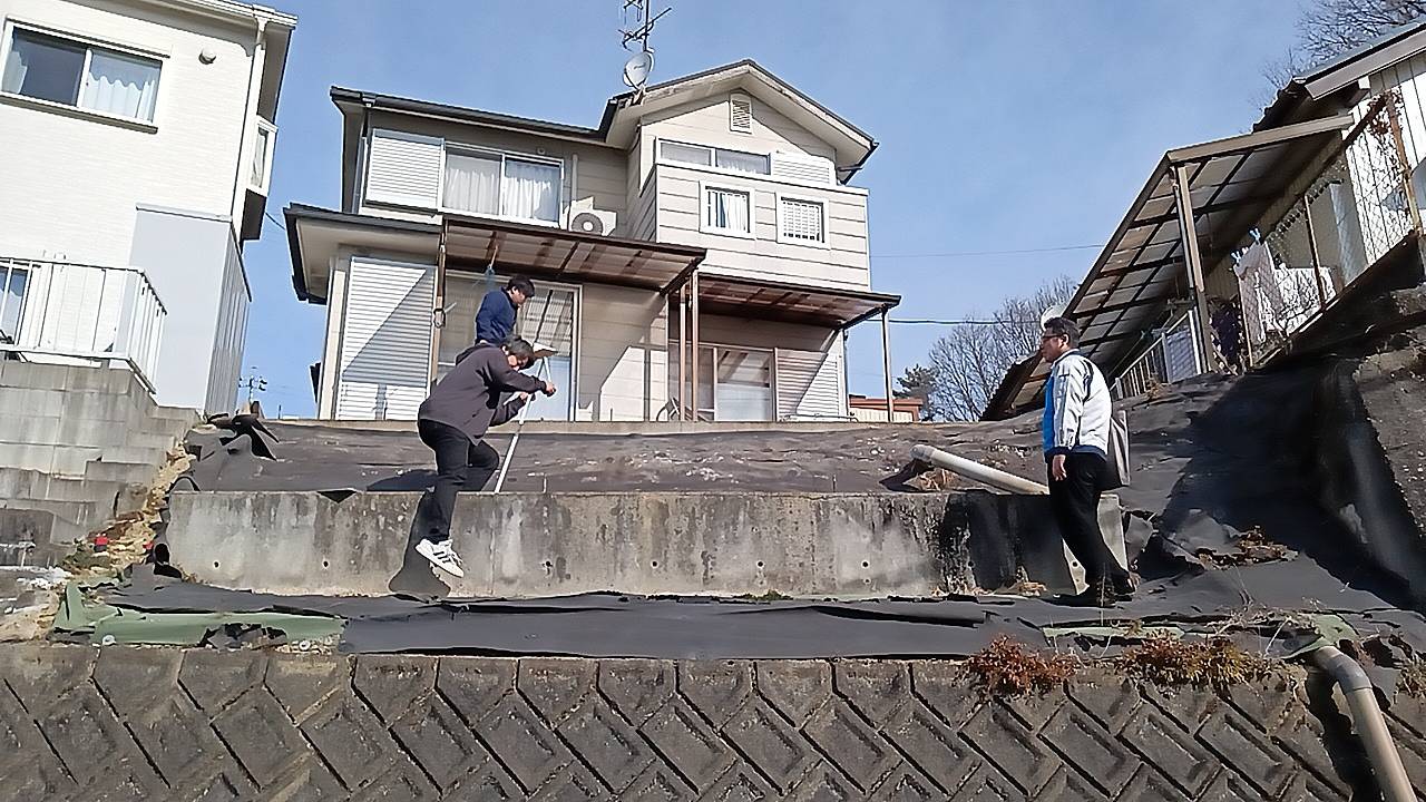 今の既設の防草シートは撤去します。