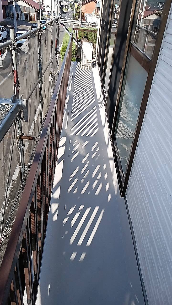 ベランダの床の防水工事も綺麗に完了しました。