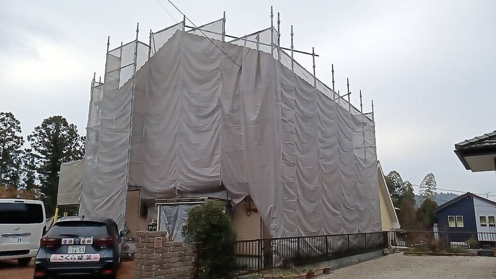 中津川市で外壁塗装です。アステックペイントのプラチナリファイン無機を使用します。