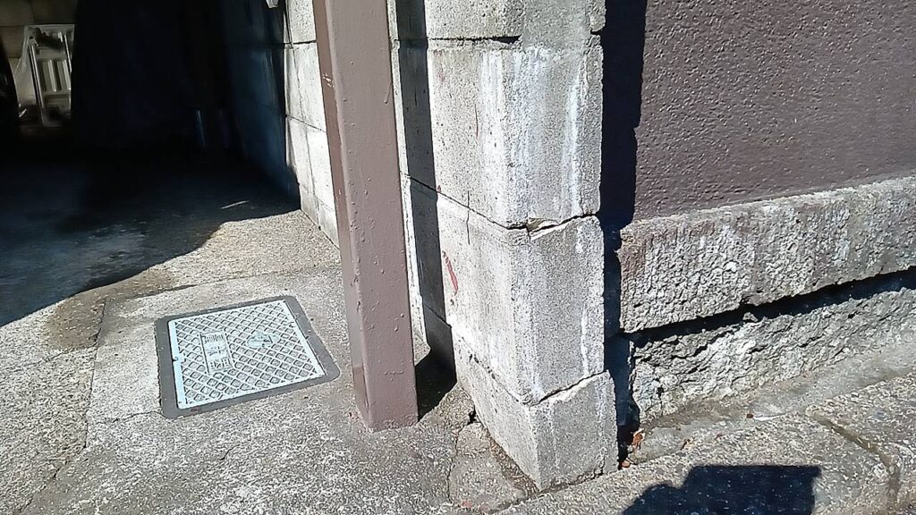 奥様に、外壁塗装を施工されるよりも、このブロックの傾きを直された方が良いのではありませんか、とアドバイスさせて頂きました。