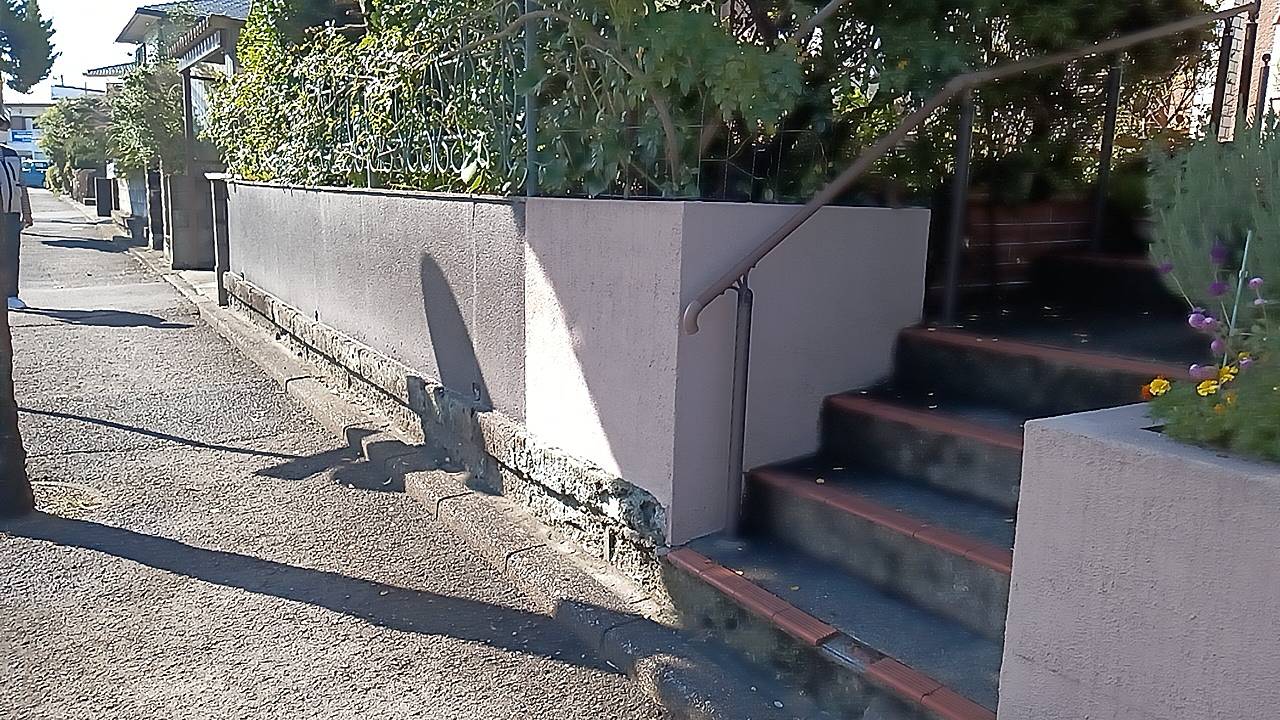 奥様に、外壁塗装を施工されるよりも、このブロックの傾きを直された方が良いのではありませんか、とアドバイスさせて頂きました。