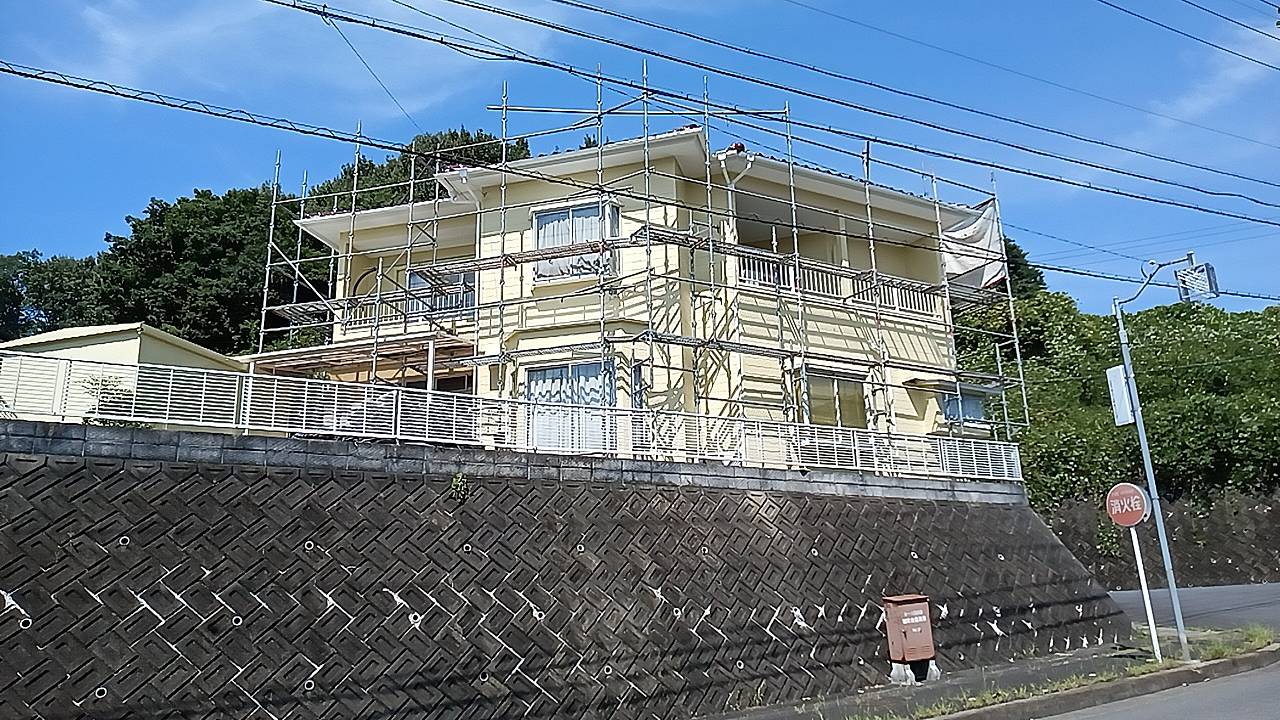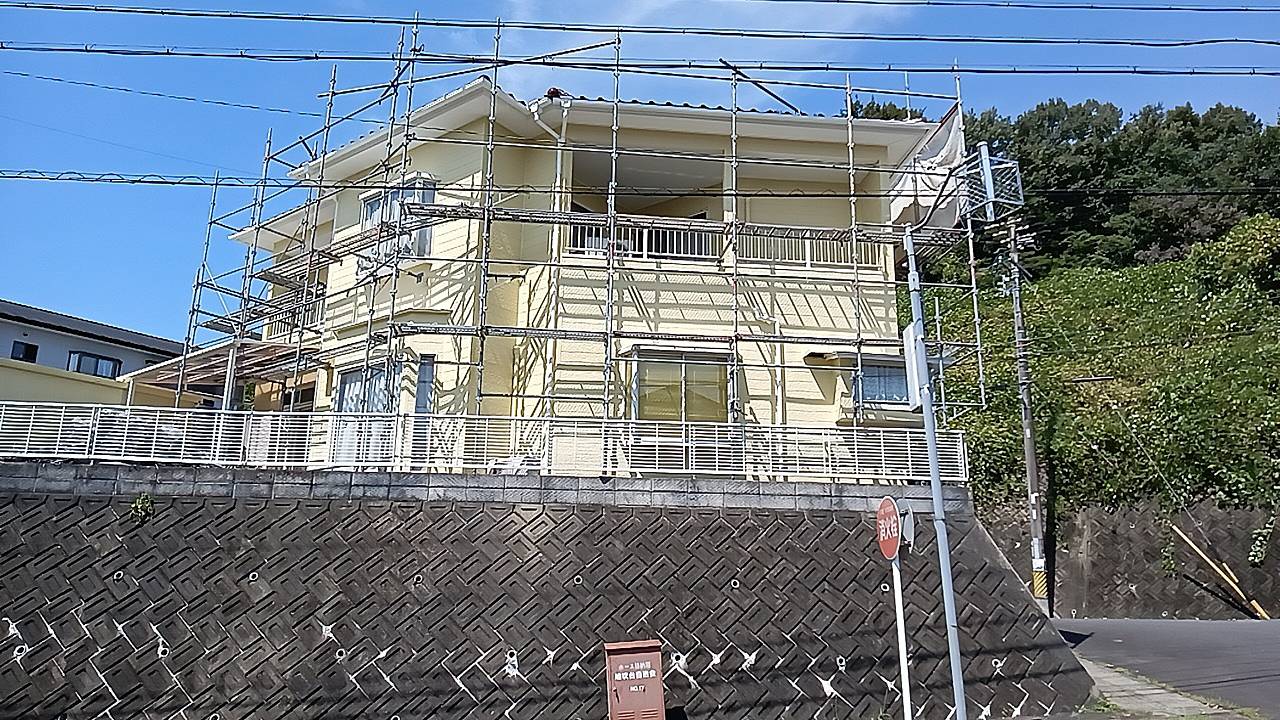 外壁の塗装工事が鮮やかな色目にて完了しました。中津川市です。