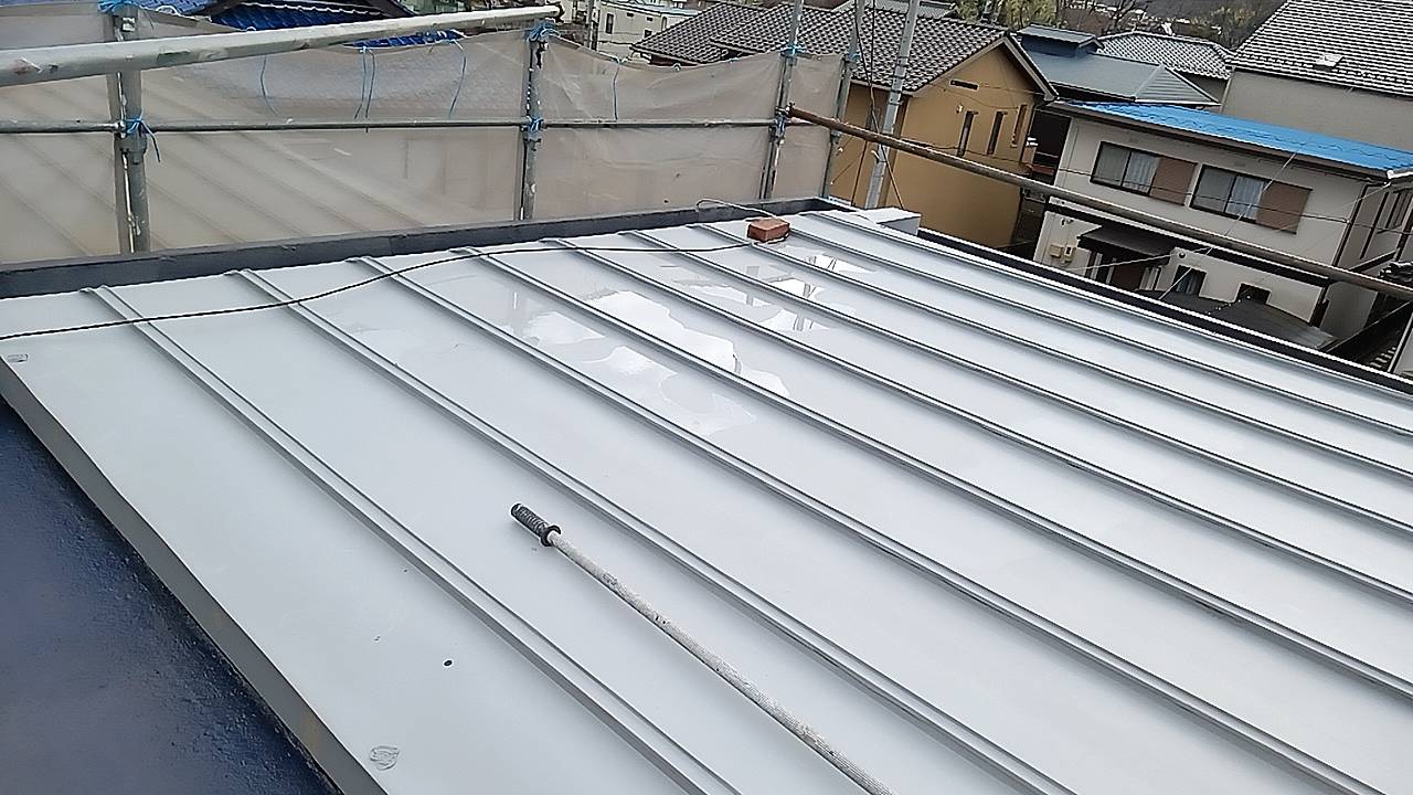 瓦棒の塗装工事をおこなっています。中津川市です。