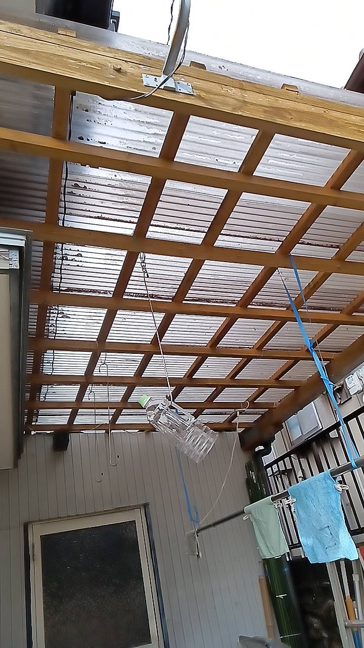 このように、ご自分で施工されたテラスの波板の取り外し、再度の取り付けは、職人さん泣かせの