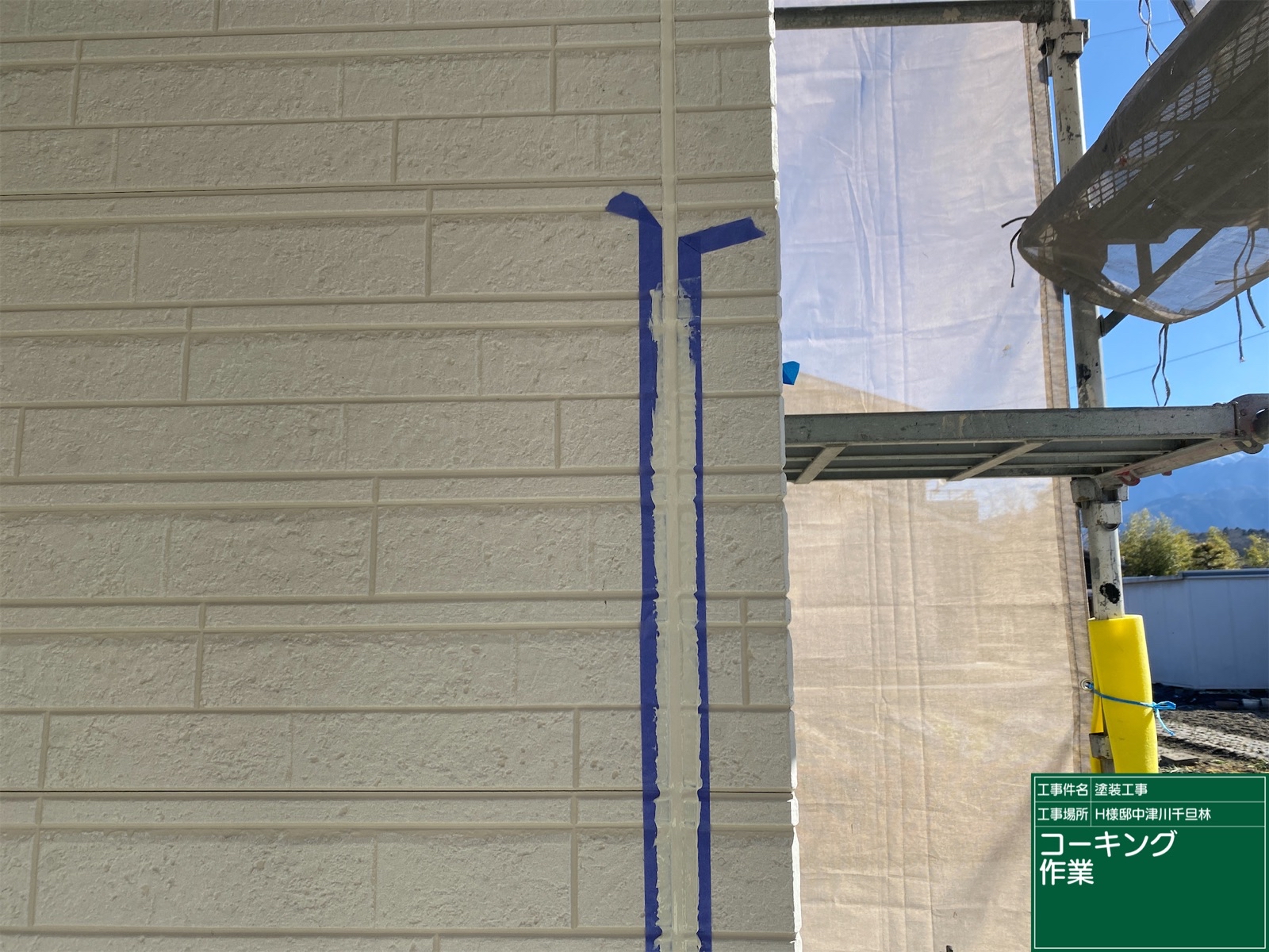 シーリング施工中 防水機能のある素材を注入する工程です。