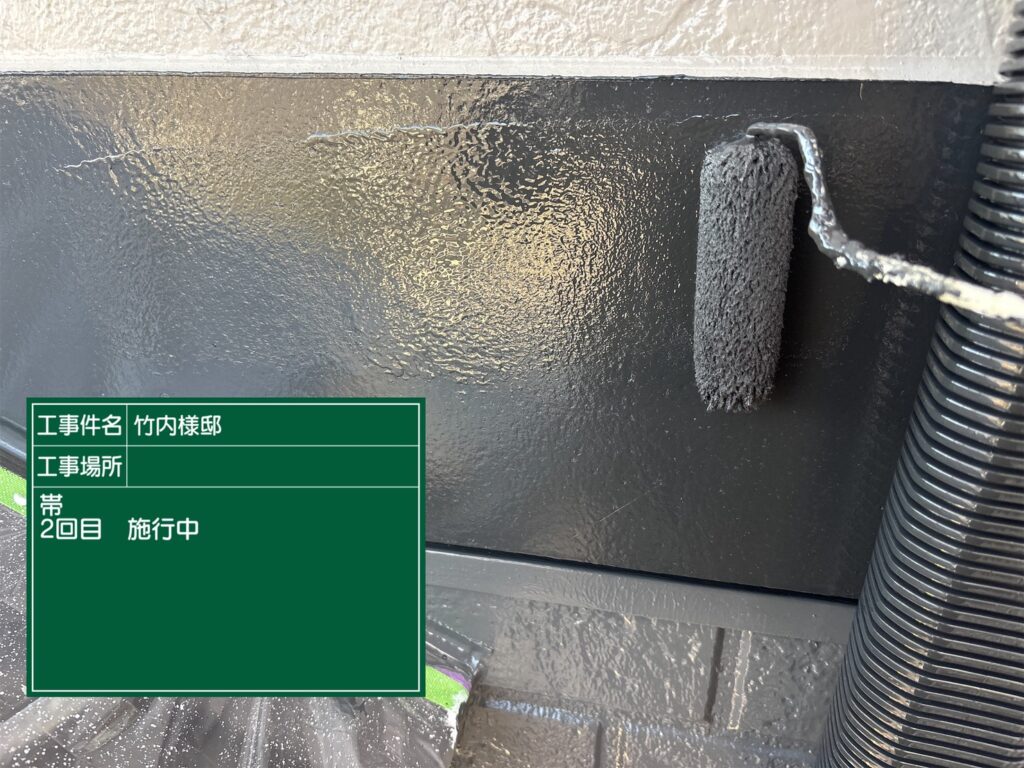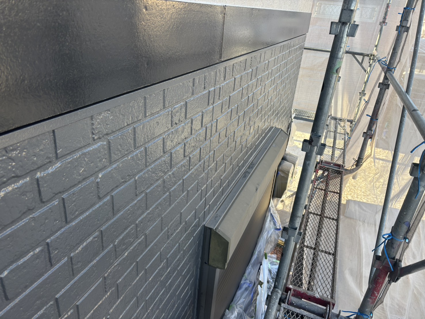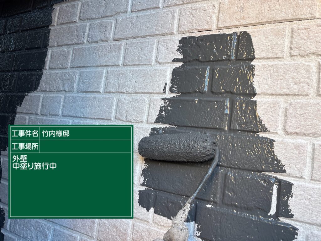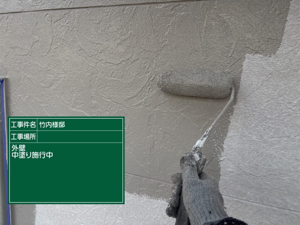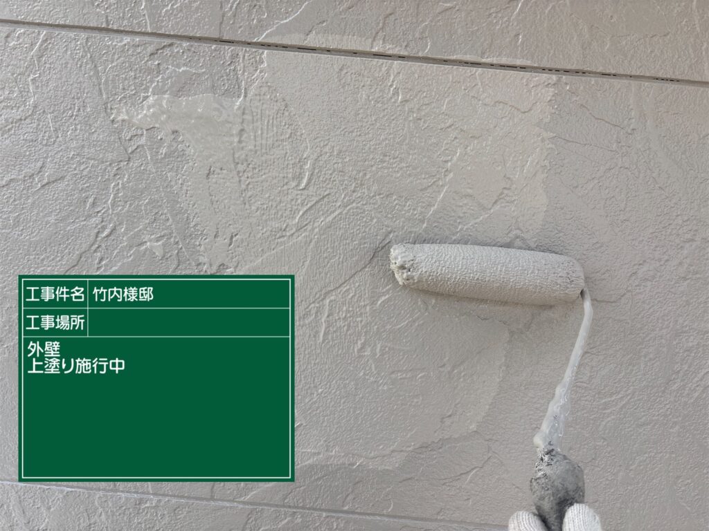 外壁の中塗り施工中            外壁の上塗り施工中           外壁の上塗り施工完了