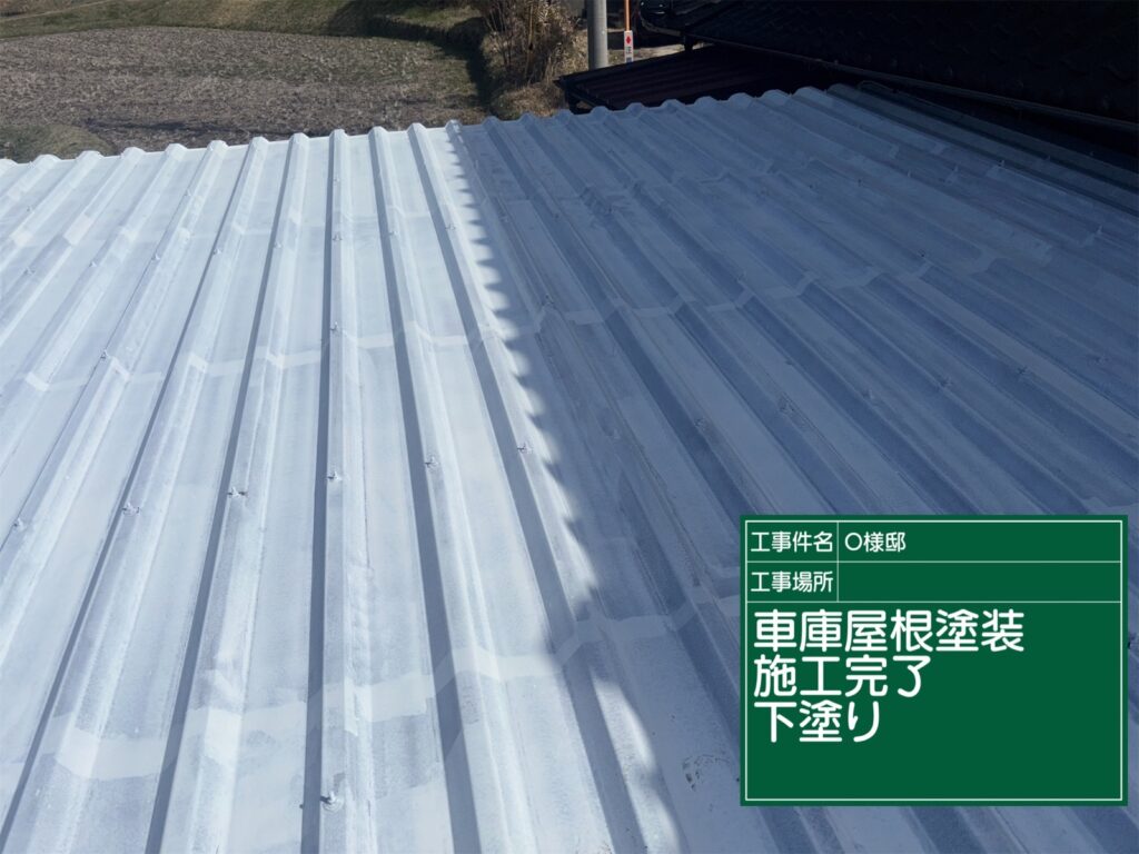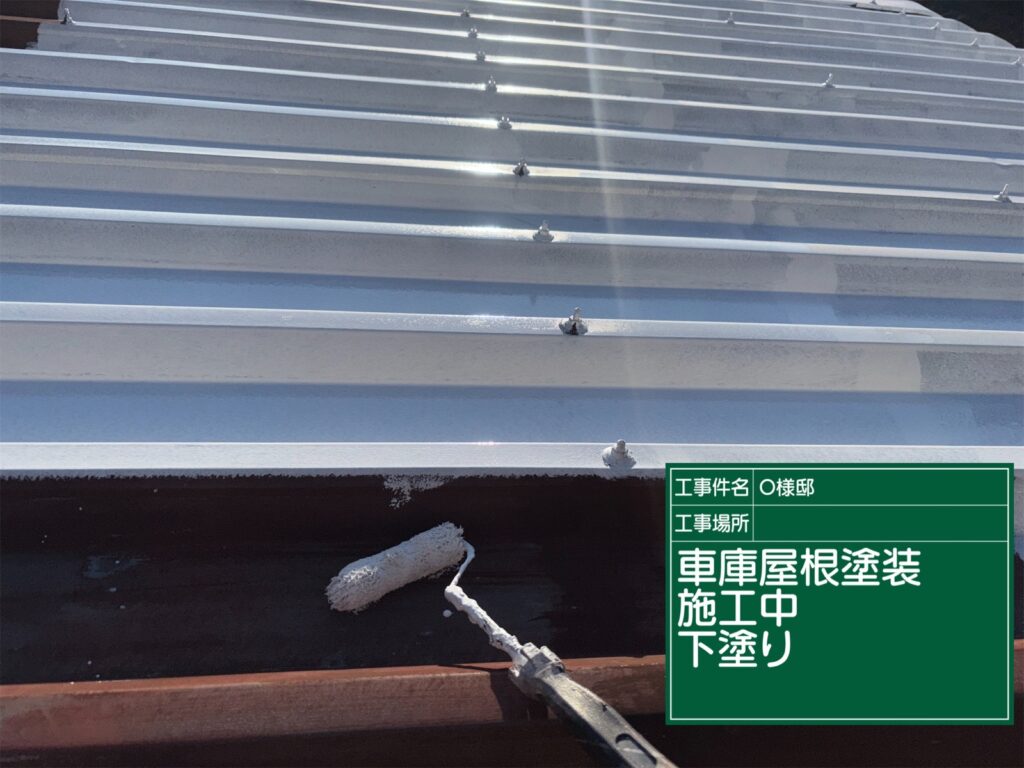 車庫の屋根の下塗り施工完了