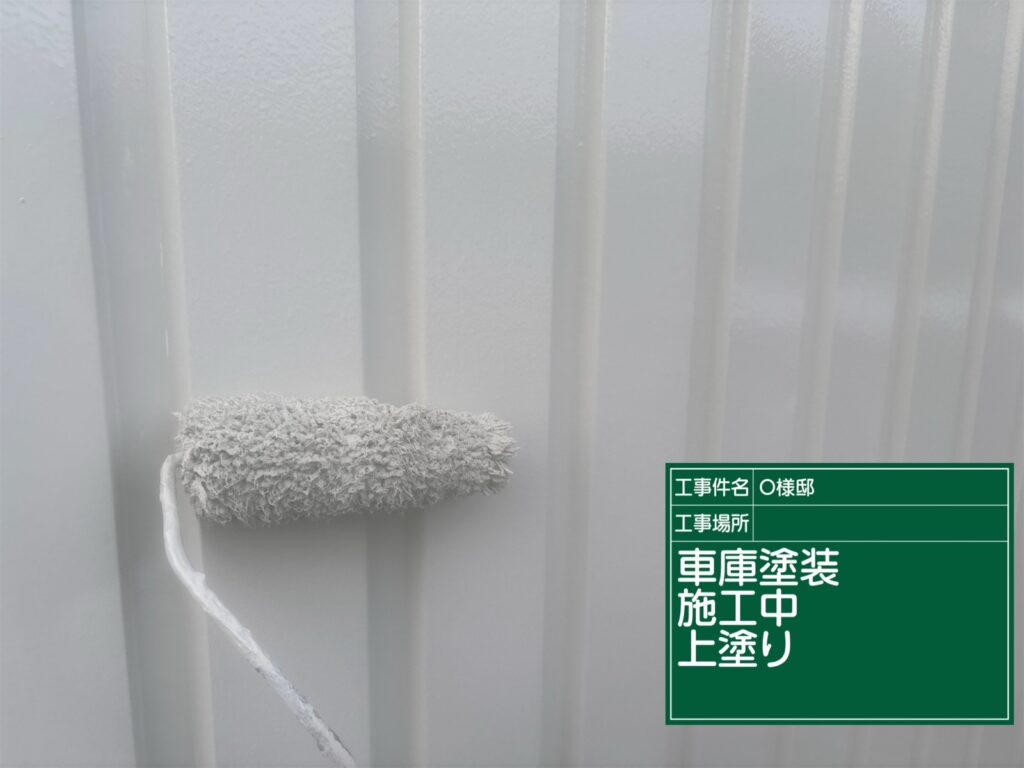 車庫の上塗り施工中