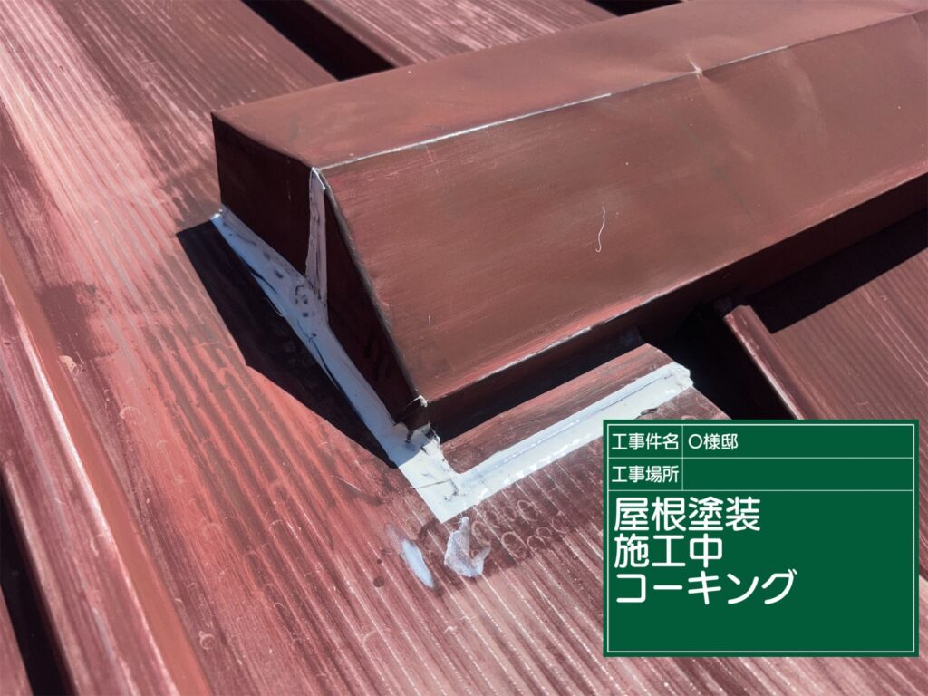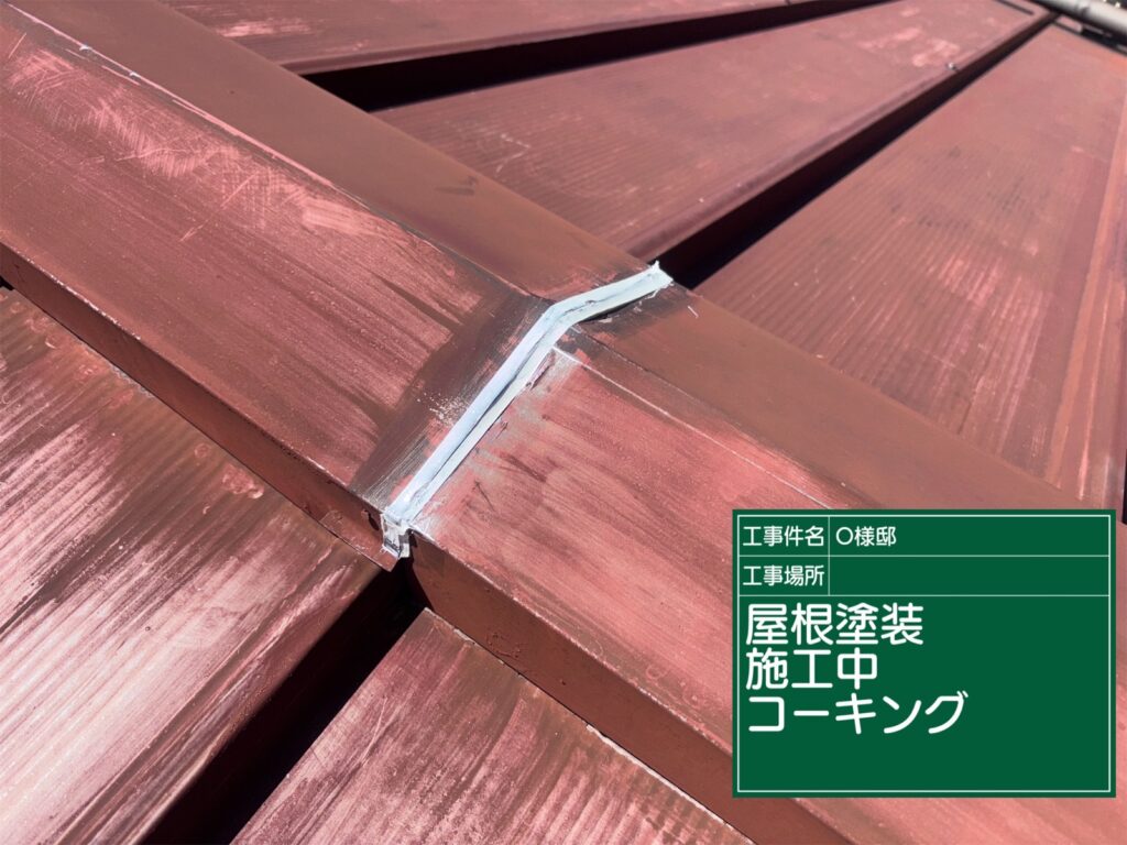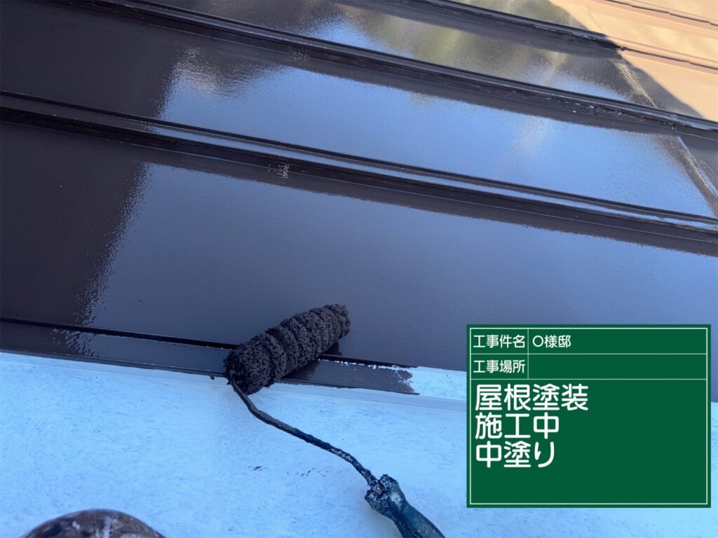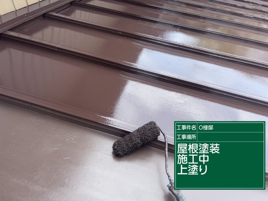 屋根の中塗り施工中