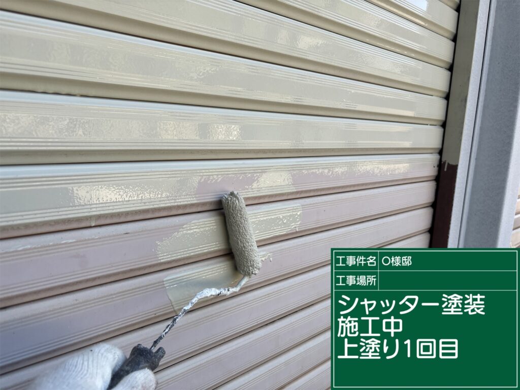 シャッターの上塗り(1回目)施工中