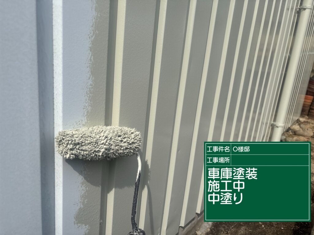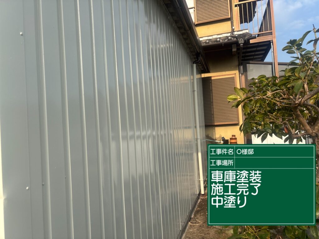 車庫の中塗り施工完了