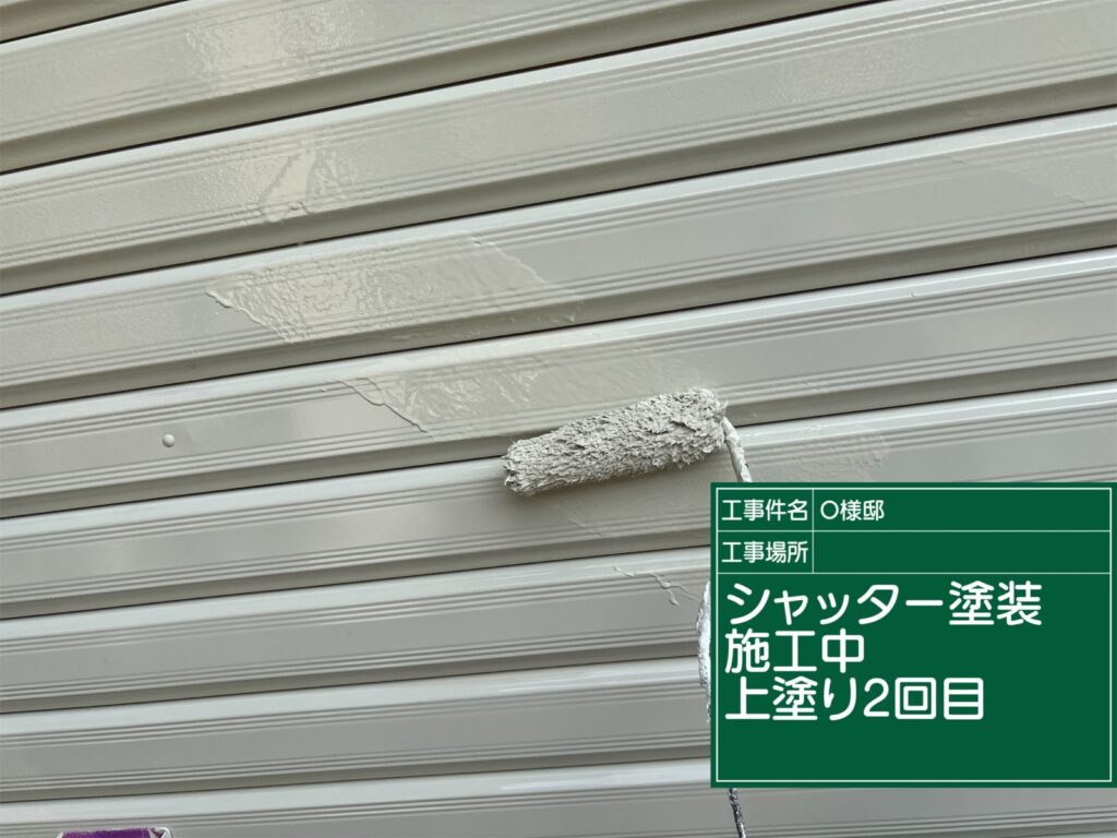 シャッターの上塗り(2回目)施工中