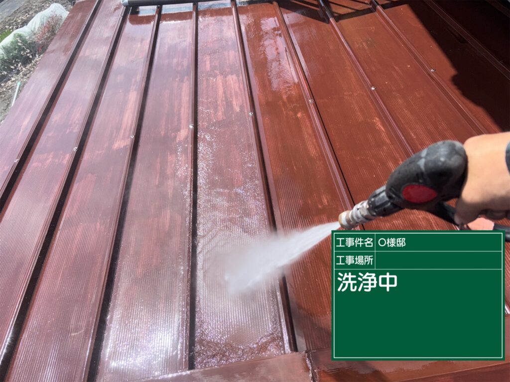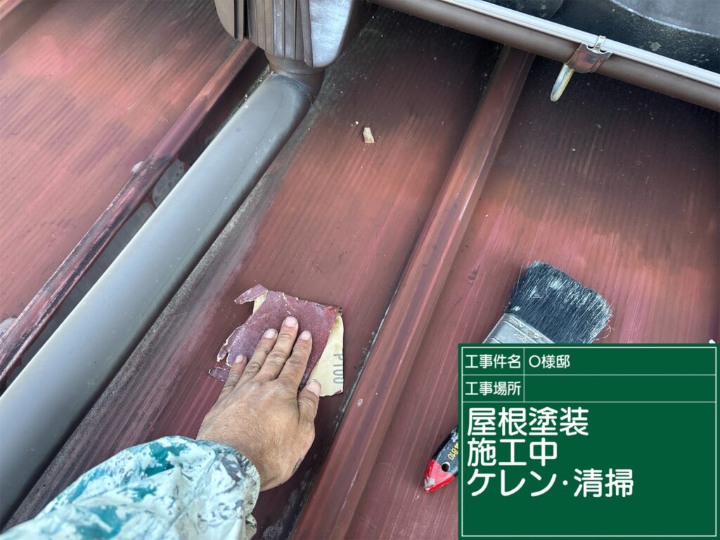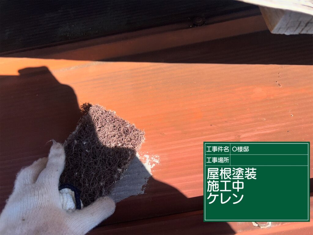 屋根の下塗り施工中