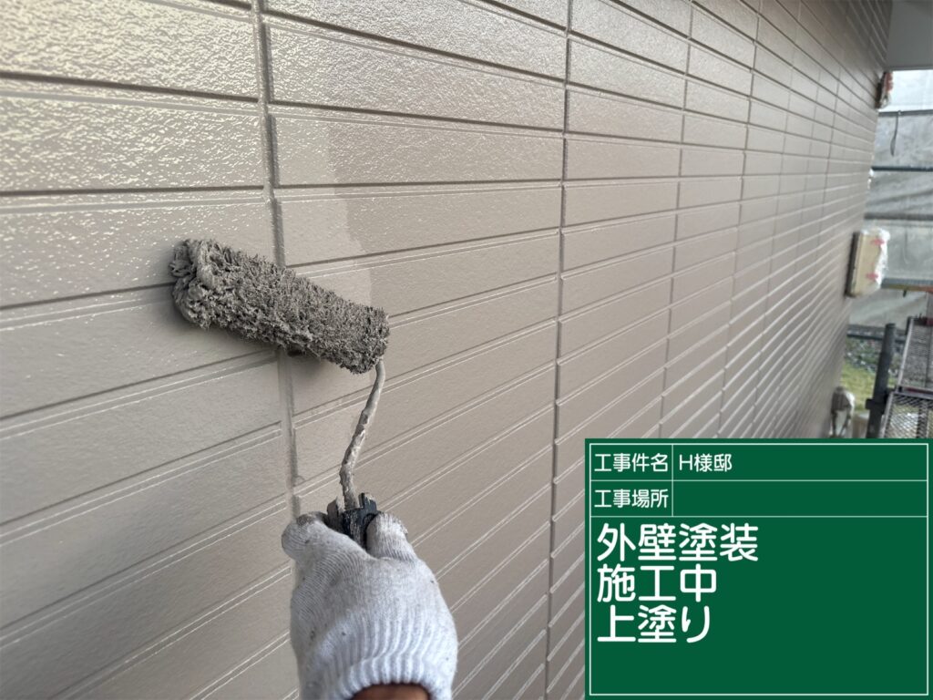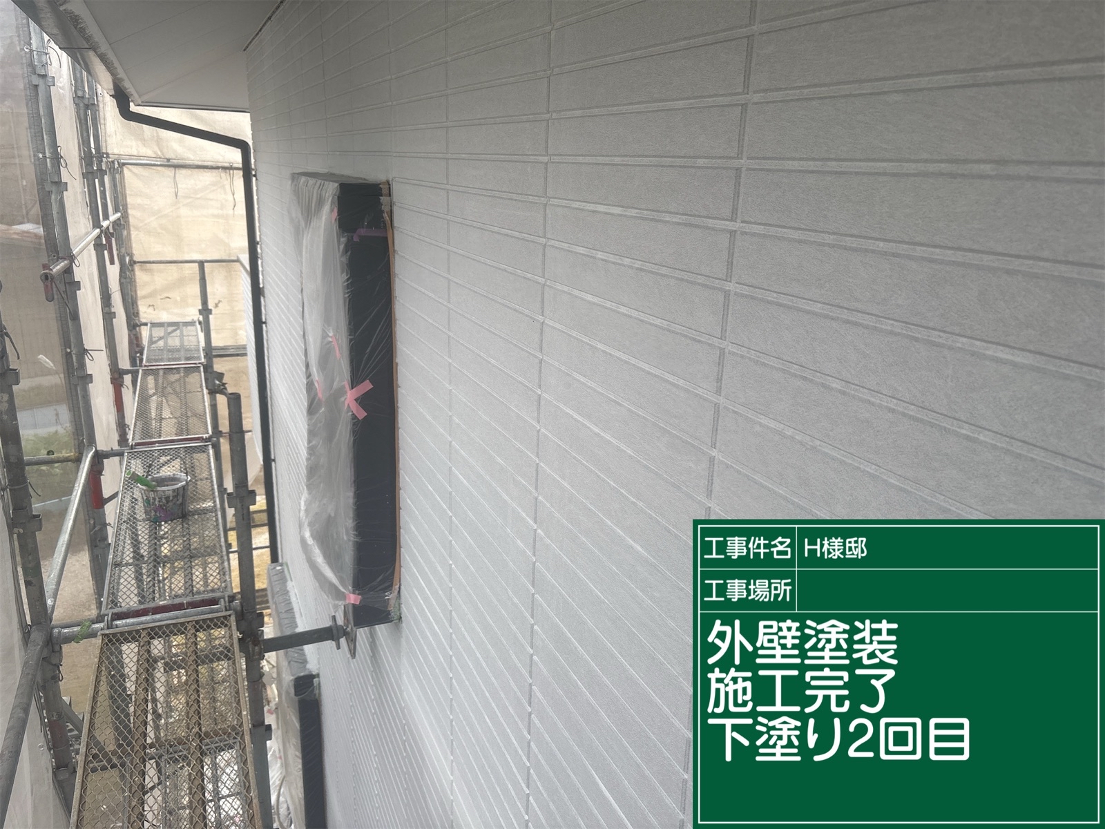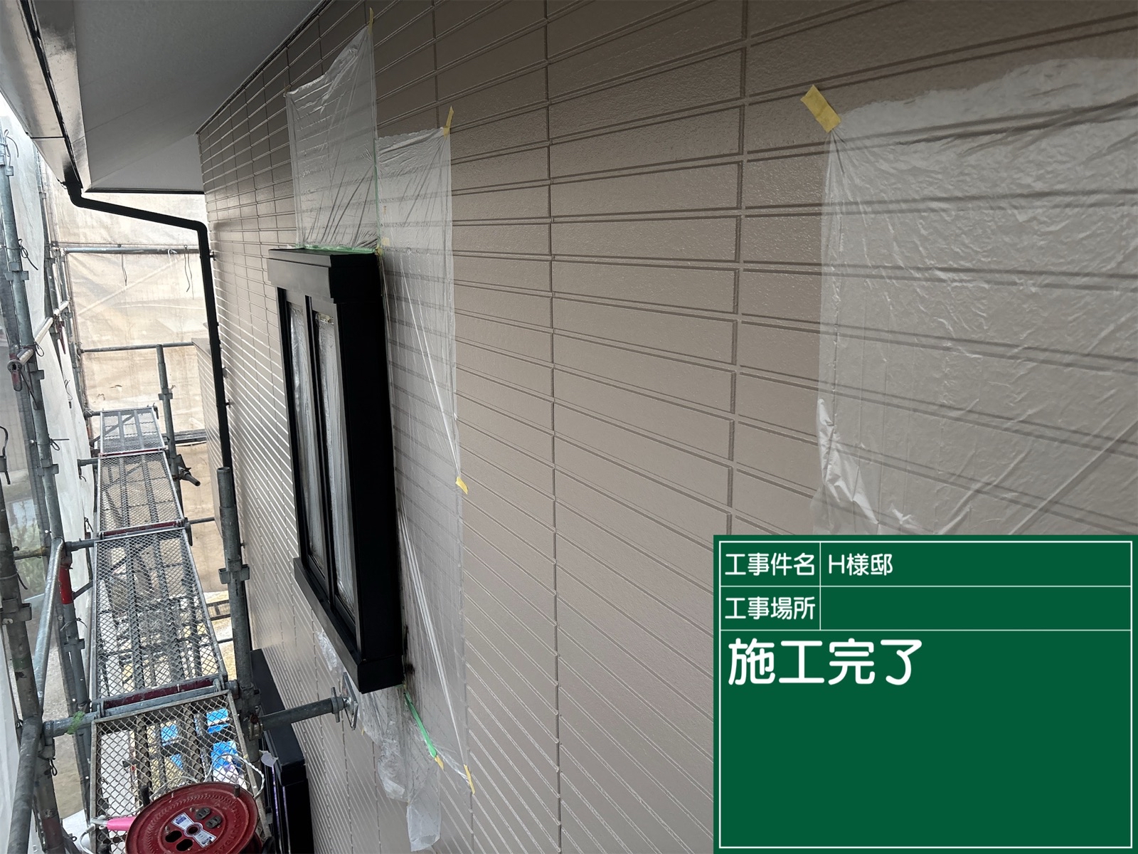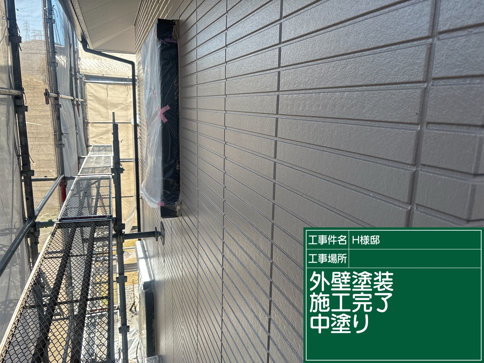 外壁の中塗り施工完了         外壁の上塗り施工中          外壁の上塗り施工完了
