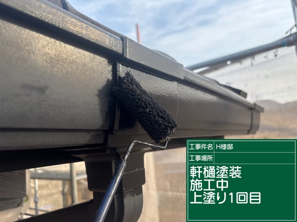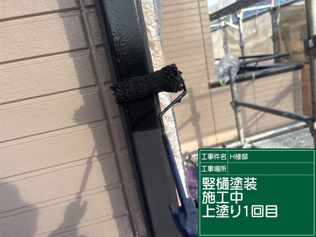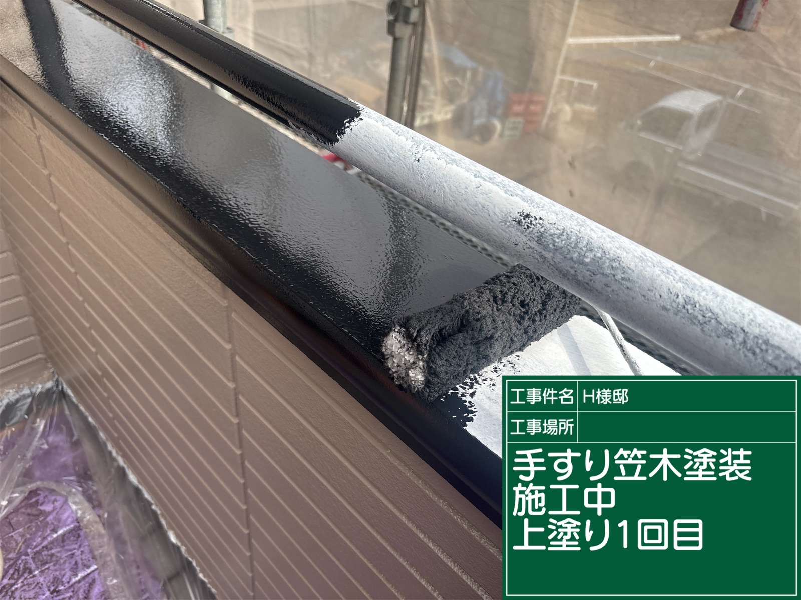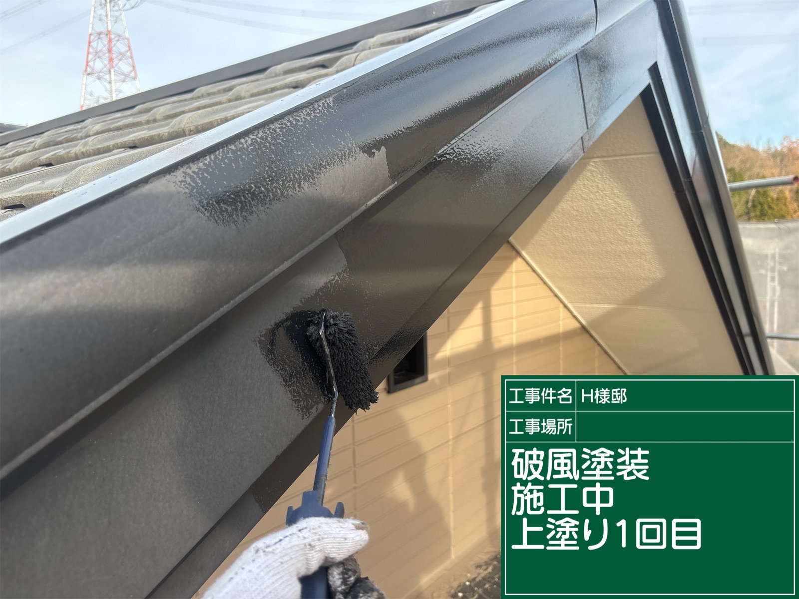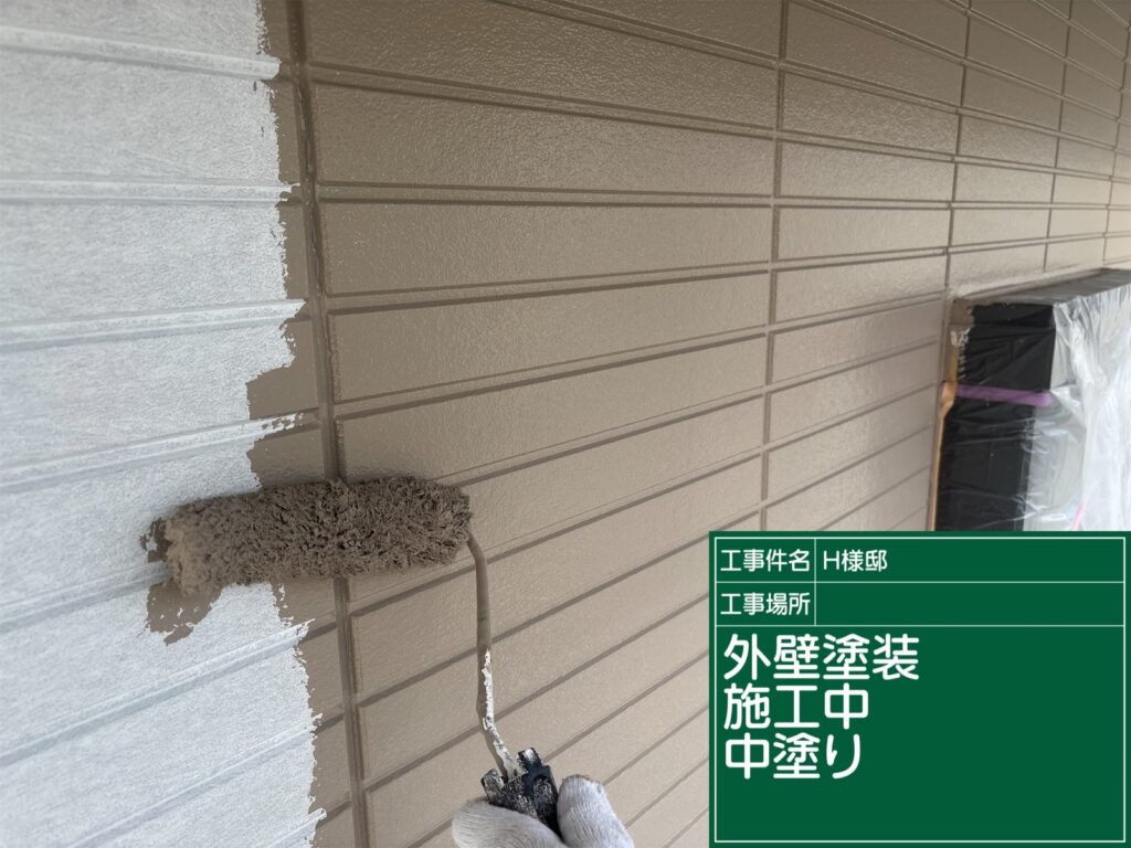 外壁の中塗り施工完了         外壁の上塗り施工中          外壁の上塗り施工完了