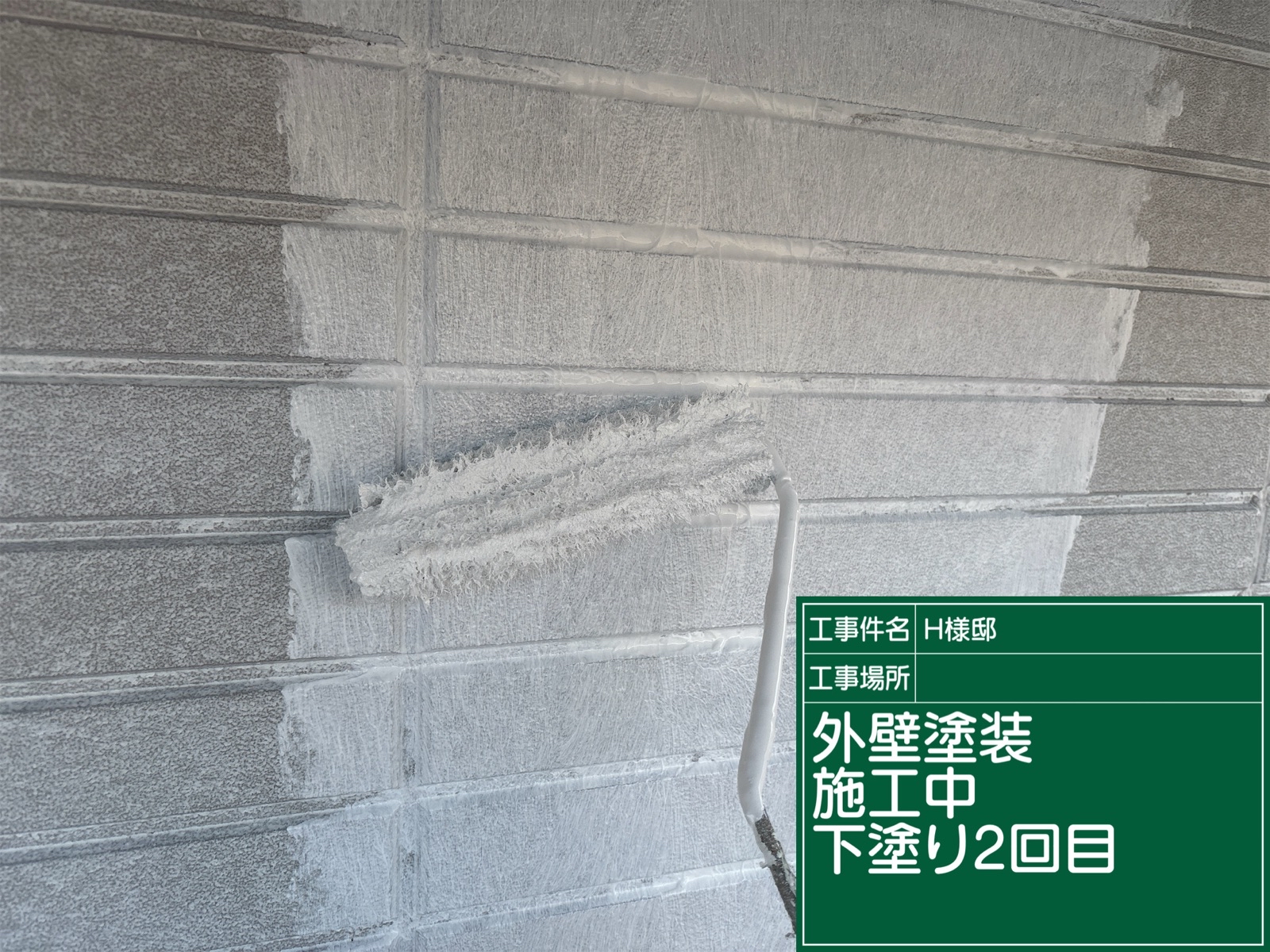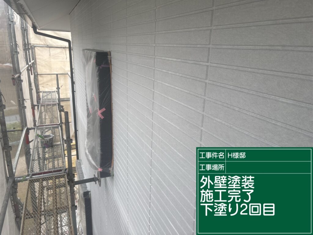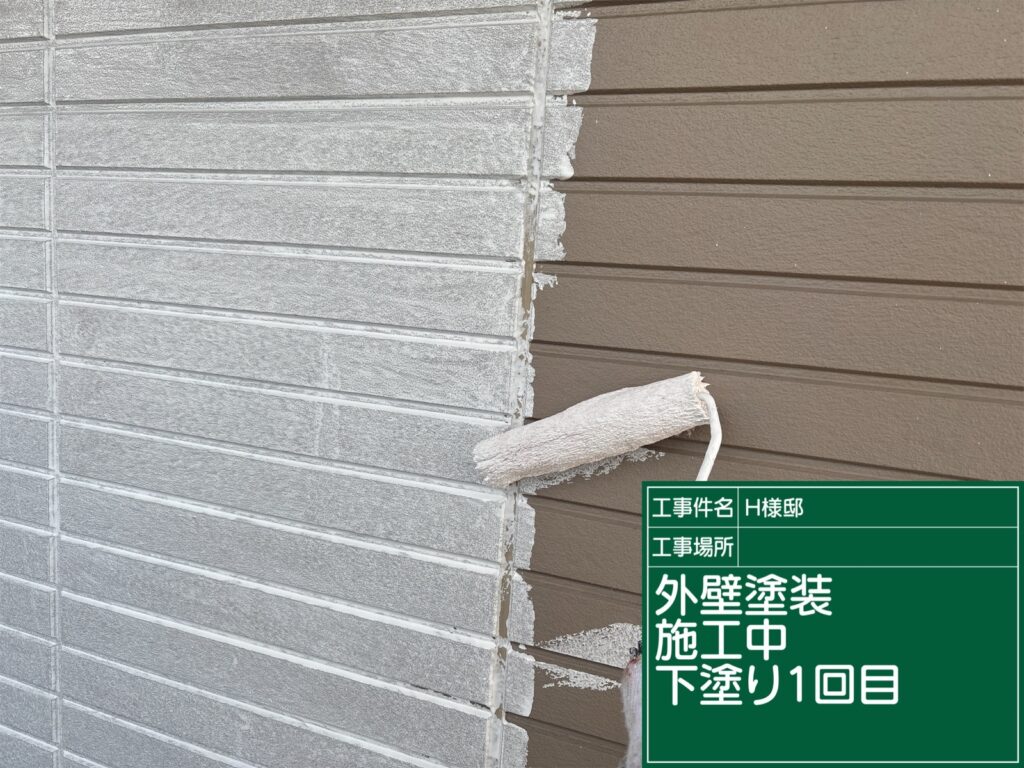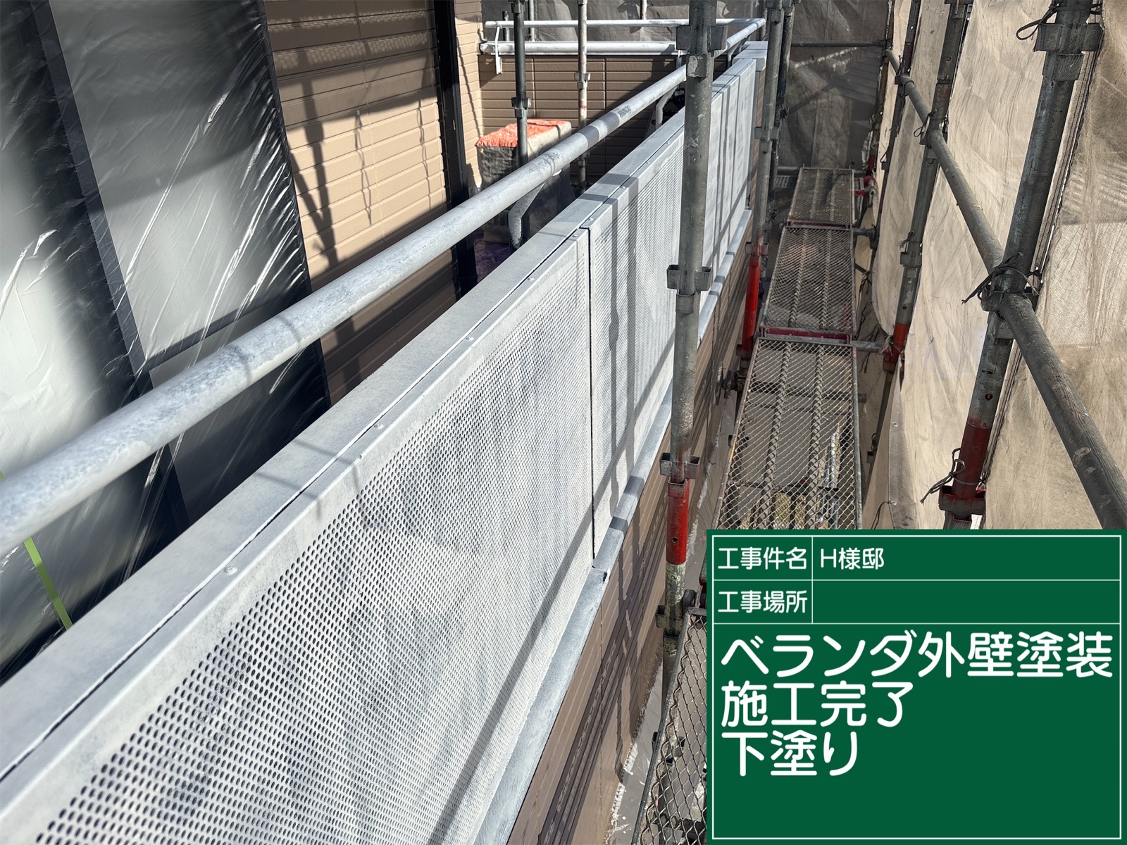 ベランダ前のサイディングボードが少し、痛んできていることもあり、下塗りを2回、施工されることを提案させて頂きました。