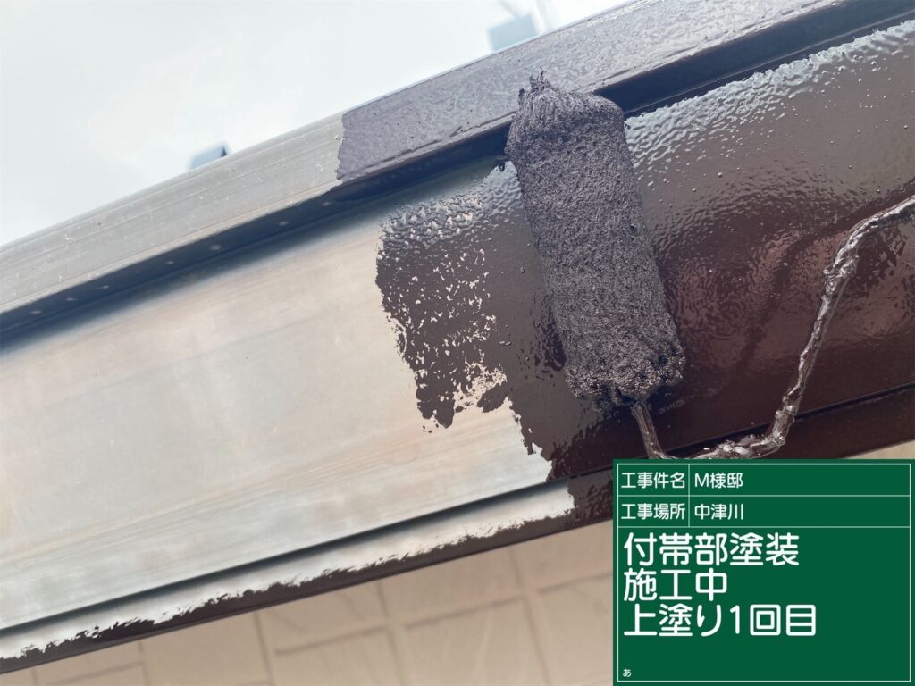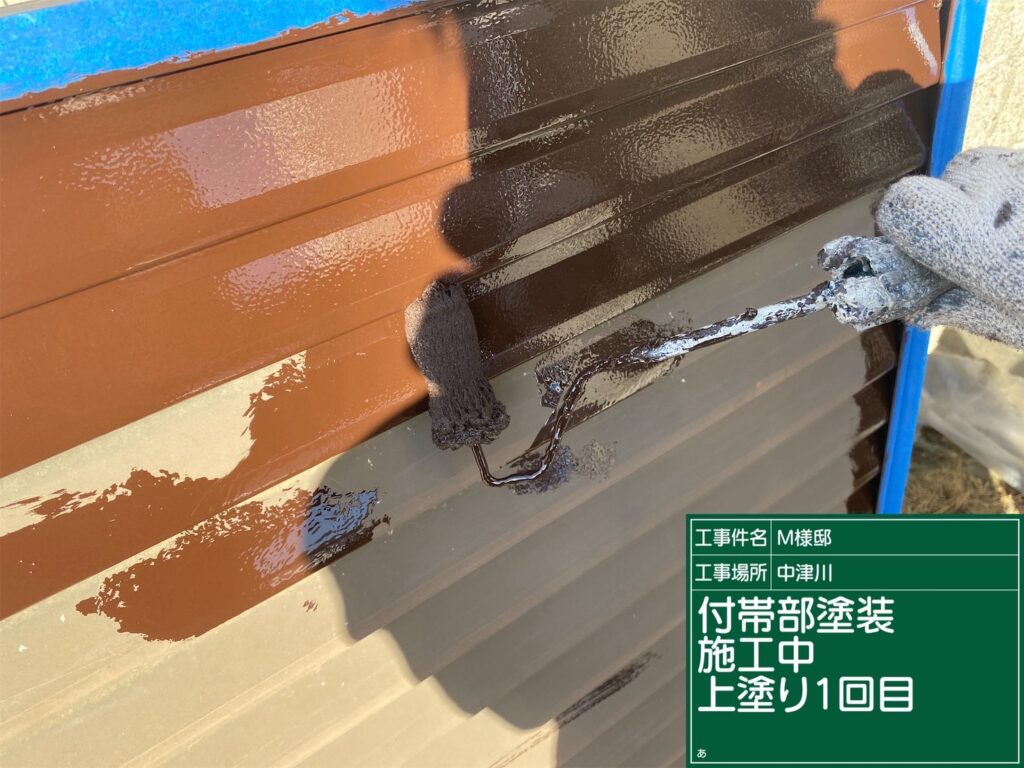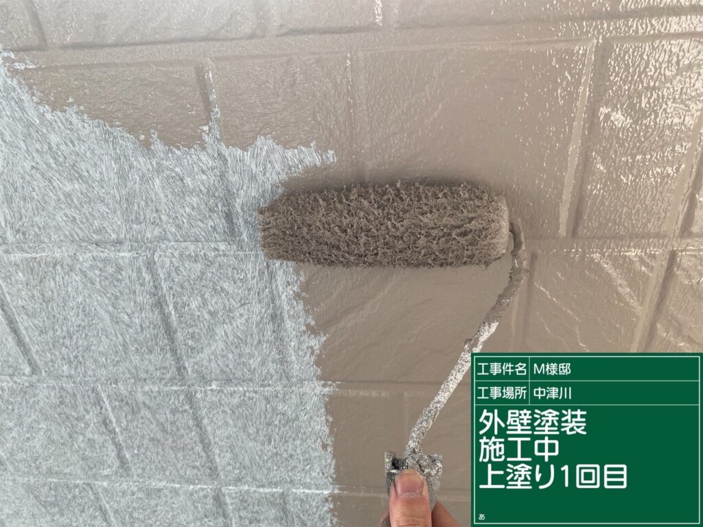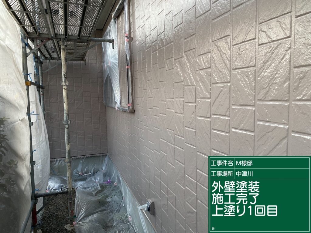 外壁の中塗り施工完了           外壁の上塗り施工中           外壁の上塗り施工中