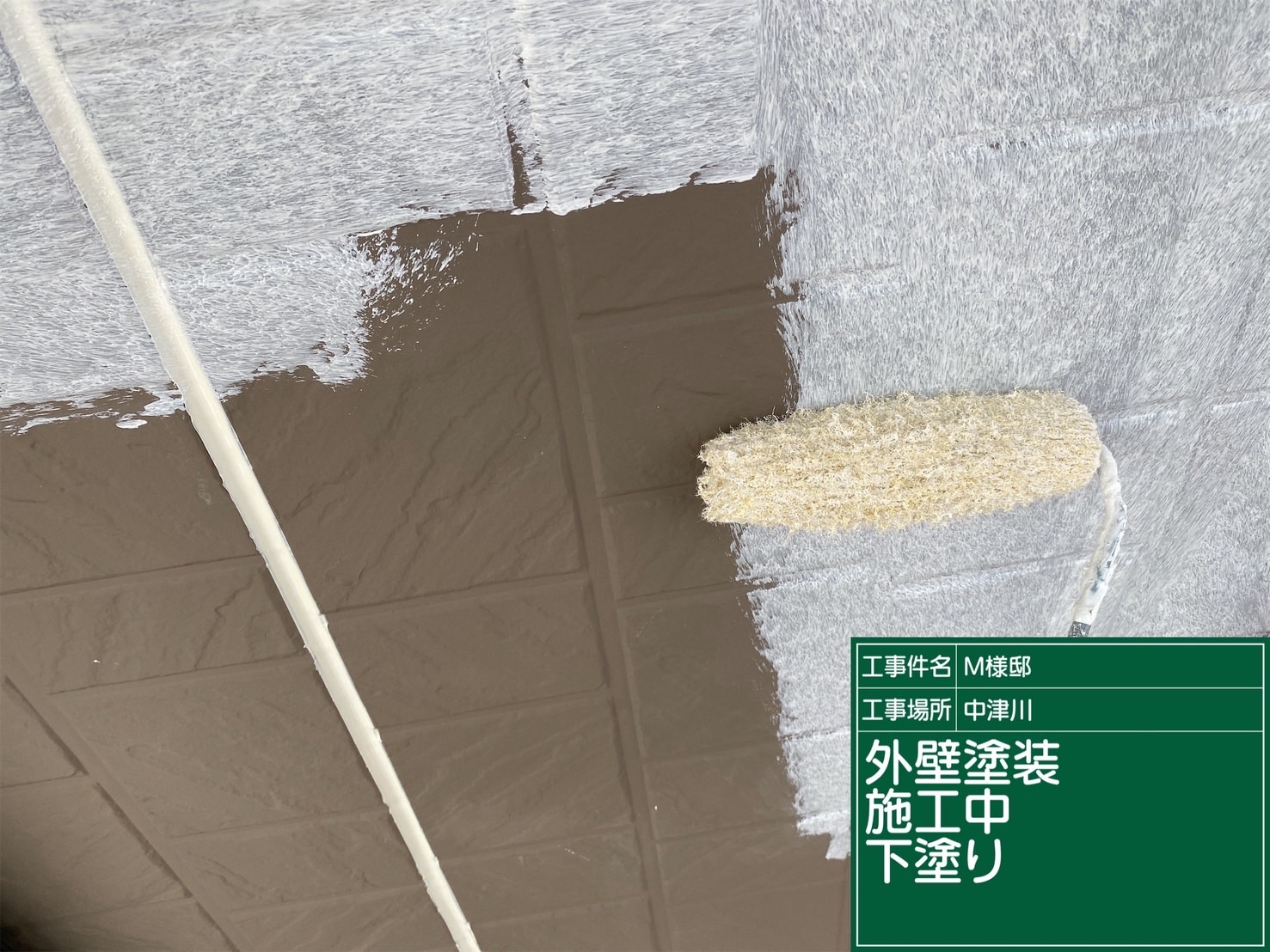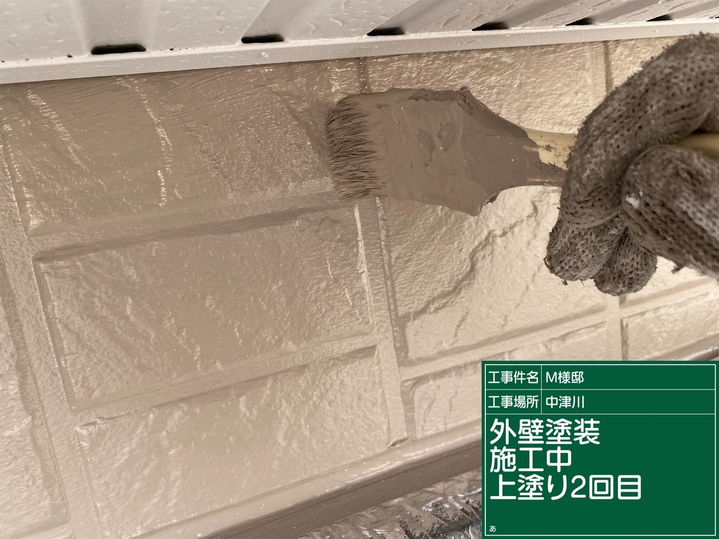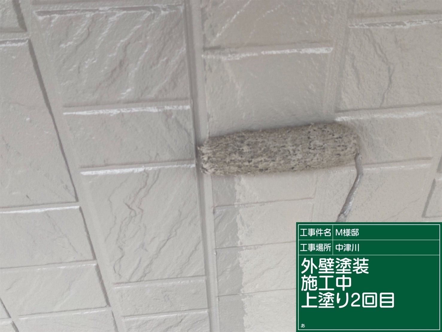 外壁の中塗り施工完了           外壁の上塗り施工中           外壁の上塗り施工中
