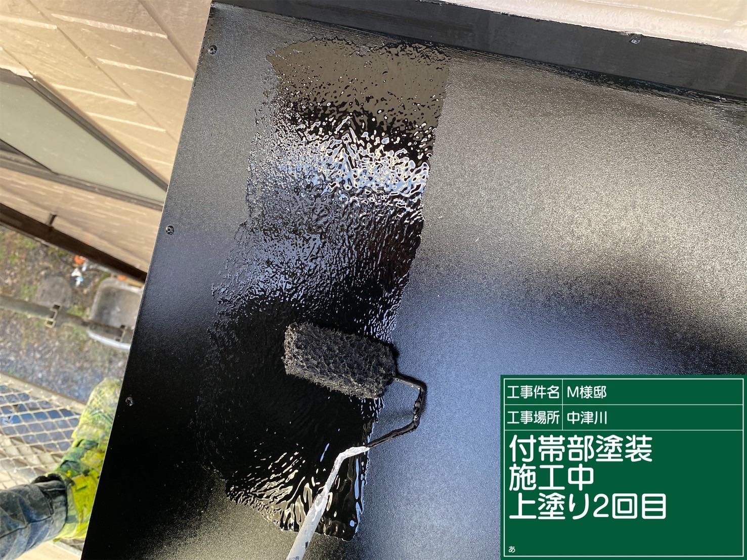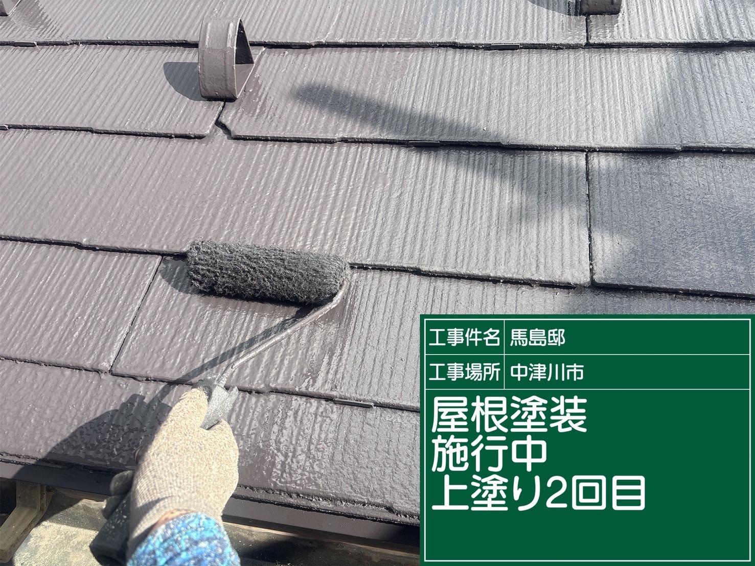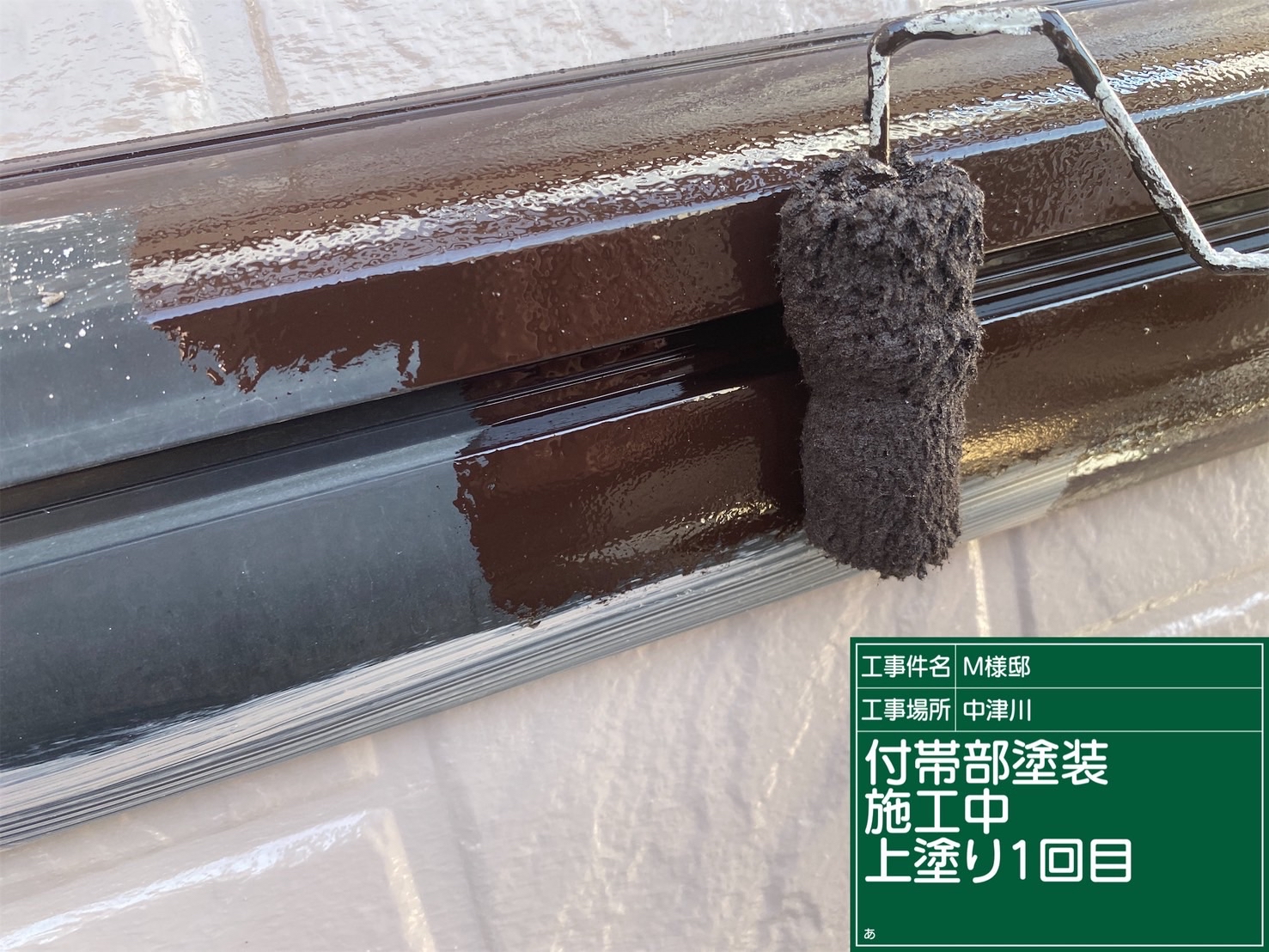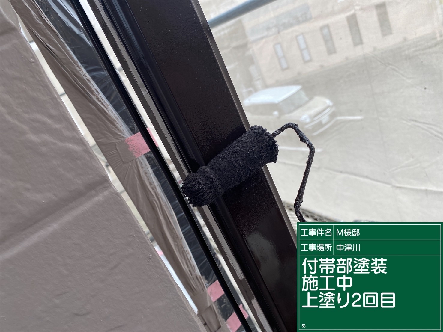 外壁の中塗り施工完了           外壁の上塗り施工中           外壁の上塗り施工中